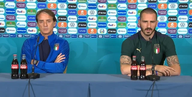Итальянец, празднуя победу на чемпионате Европы, открыл бутылку пива во время пресс-конференции и начал пить, после чего запил его "Кока-колой".