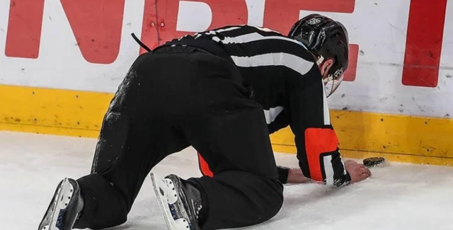 Судья начал себя вести странно уже во время предматчевой раскатки, тогда зрители заметили, что у мужчины разъезжаются в разные стороны коньки и он не готов судить матч. Комментатор матча также удивлялся, что происходит с арбитром, предположив то ли в шутку, то ли всерьез, что он не наточил свои коньки.