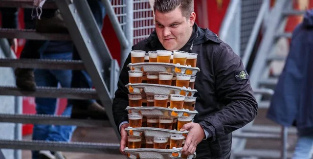 Лучший доставщик в мире. Молодой фанат принес на трибуну 48 пинт пива и стал знаменитым (фото)