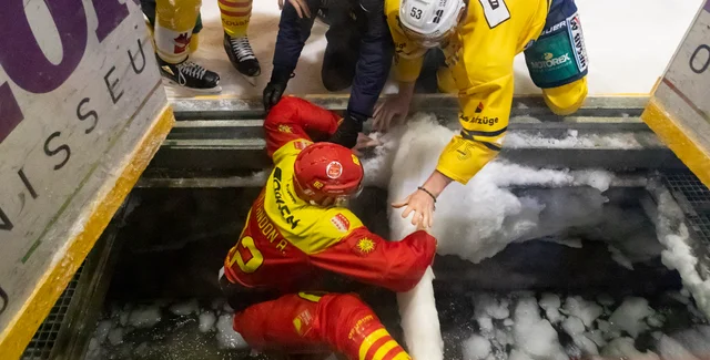 К счастью для игроков, оба миновали металлический прут, разделяющий яму пополам, и не получили никаких травм. Судьи и коллеги помогли хоккеистам выбраться из воды на поле, после чего они продолжили игру, правда, Арно Монтадону пришлось переодеться, ведь он окунулся с головой. Матч закончился со счетом 3:2 в пользу "Лангенталя". Упавшим даже вручили награды, как лучшим игрокам матча.