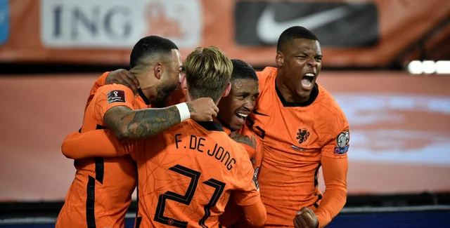 Нидерланды: Нопперт, Дамфрис, Де Лигт, Ван Дейк, Аке, Блинд, Бергейс, Гакпо, Де Йонг, Янссен, Бергвейн.