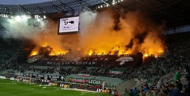 Некоторые фанаты клуба "Шленск" во Вроцлаве во время матча второго тура чемпионата Польши в матче против Заглембе (1:2) вывесили провокационные баннеры, протестуя против Украины. Фото событий на стадионе "Тарчинская Арена" в Twitter опубликовал журналист Марцин Торж.