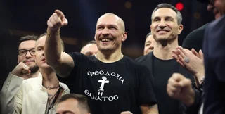 Александр Усик празднует победу над Тайсоном Фьюри 21 декабря 2024 года с Владимиром Кличко | Фото: Getty