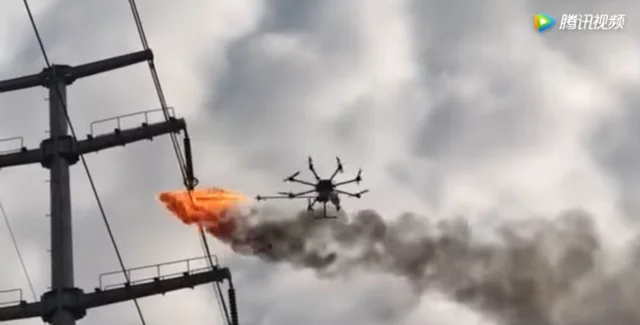 В китайском округе Саньян состоялось первое испытание дрона, оснащенного портативным огнеметом для быстрой уборки мусора, зависшего на высоковольтных линиях. Об этом пишет Эспрессо.