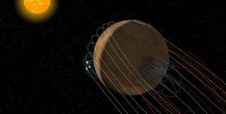 Анализ данных космического аппарата NASA MAVEN, оснащенного сверхчувствительными датчиками, показал, что остатки магнитного поля вокруг Марса сформировались в своеобразный "магнитный хвост" позади планеты.