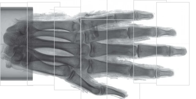 Используя фазоконтрастную компьютерную томографию, ученые изучили всю руку и воссоздали изображение кончика среднего пальца с точностью до от 6-9 микрометров - это немного больше, чем диаметр эритроцита в крови человека. Исследователи смогли увидеть остатки жировых клеток, кровеносных сосудов и нервов. Более того, они даже смогли обнаружить кровеносные сосуды в ногтевом ложе и различить разные слои кожи на кончике пальца.