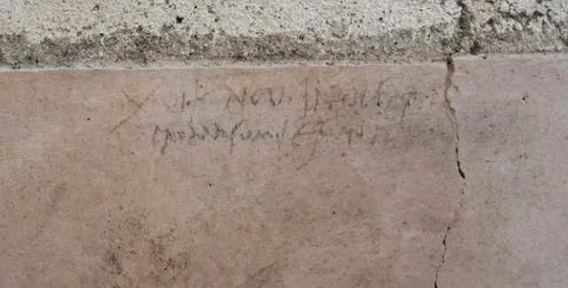 В одной из комнат обнаружили надпись, датированную "шестнадцатым днем до ноябрьских календ" (17 октября). Год не указан, однако, так как надпись сделана углем, ученые полагают, что ее нанесли как раз в год извержения - дольше она бы не сохранилась.