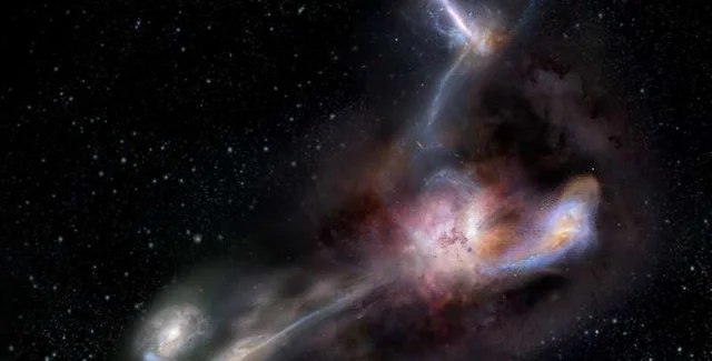Самая яркая галактика во Вселенной ворует материю у трех соседних