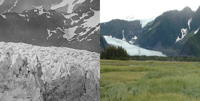 Ледник на Аляске 10 лет назад и сейчас. Фото: USGS