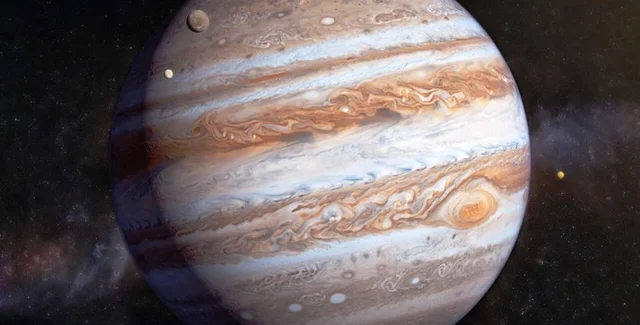 На фото можно увидеть самый большой атмосферный вихрь в Солнечной системе под названием Большое красное пятно, а также масштабный шторм Oval BА, образовавшийся в 2000 году, когда три отдельных урагана слились в один. По словам ученых, Большое красное пятно, которое вдвое шире Oval BA, могло появиться в результате подобного процесса много веков назад.