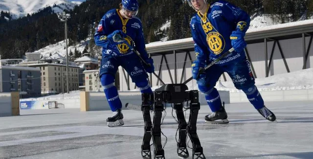 На конечностях робота закреплены лезвия коньков. Он передвигается, ритмично поворачивая свои коньки вправо и влево. Чем это отличается от движений человека на коньках, можно увидеть в ролике, где робот катается вместе с хоккеистами.