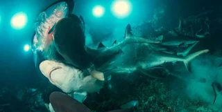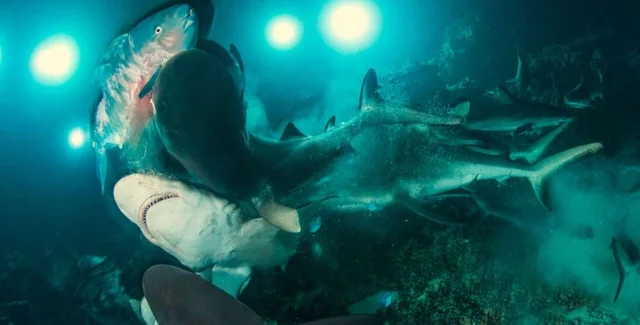 "Когда я погрузился, то увидел на дне сотни акул. Эта несчастная рыба шевельнулась - и вся стая среагировала на движение. Я оказался в самом центре хаоса и инстинктивно нажал кнопку затвора. Через мгновение о случившемся напоминал только дождь из чешуи - и это фото на моей камере", - рассказывает Барнден.