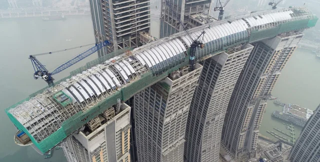 Восьмой и последний небоскреб Raffles City Chongqing стоимостью 3,8 млрд долларов был недавно завершен. Открытие "небесного моста" состоится уже в этом году.