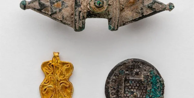 Заколка (сверху), золотая подвеска и римская монета. фото: Dipartimento giustizia URI