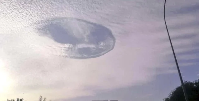 Такие дыры очевидцы часто принимают за НЛО, след от метеорита или формирующийся смерч. На самом деле это редкое, но вполне безобидное явление, обычно вызванное пролетающим сквозь облака самолетом, который оставляет позади себя область низкого давления.