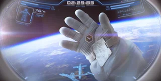 На перчатку скафандра нанесены три метки, каждая из которых соответствует определенным данным: жизненные показатели астронавта, оповещения об аварийных ситуациях, детали миссии. Шлем распознает, на какую из меток смотрит носитель, и отображает на дисплее требуемую информацию.