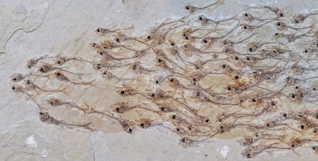 Ученые нашли окаменелость косяка рыб возрастом 50 млн лет