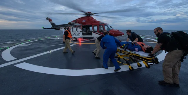 Спасательная команда потренировалась предоставлять астронавтам первую медицинскую помощь на корабле и транспортировать их на вертолете в больницу.