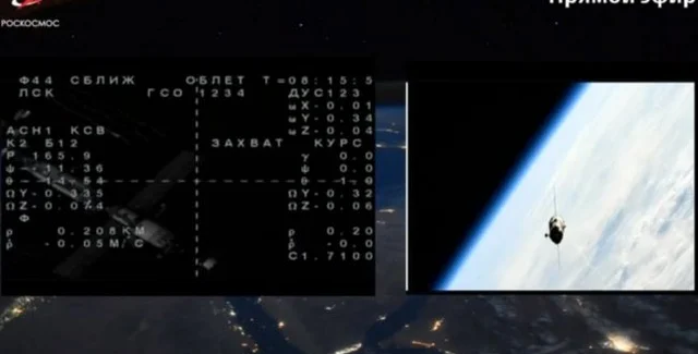 На данный момент транспортный корабль РФ находится на удалении от МКС. Новая стыковка со станцией намечена на резервную дату.
