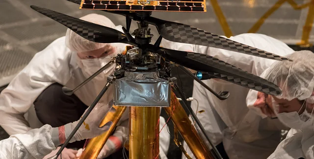 Mars Helicopter оснащен солнечными и литий-ионными батареями, а также системой подогрева, которая будет поддерживать температуру аппарата холодными марсианскими ночами.