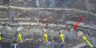 Анализ показал, что строматолиты состоят преимущественно из минерала пирита, пронизанного наноскопическими порами. Кроме того, в пирите присутствуют включения азотсодержащего органического материала, а также нити органического вещества. Эти нити очень похожи на остатки биопленок, образованных микробными колониями.