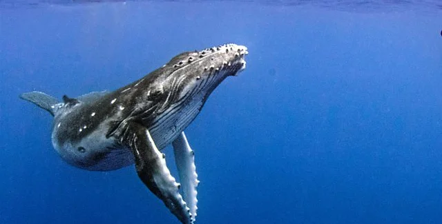 Стоит подчеркнуть, что горбатые киты обладают исключительно длинными грудными плавниками. Они могут достигать трети длины всего тела кита, что равняется 5 метрам у взрослых особей. Зачастую, плавники используются китами для маневрирования и ускорения.