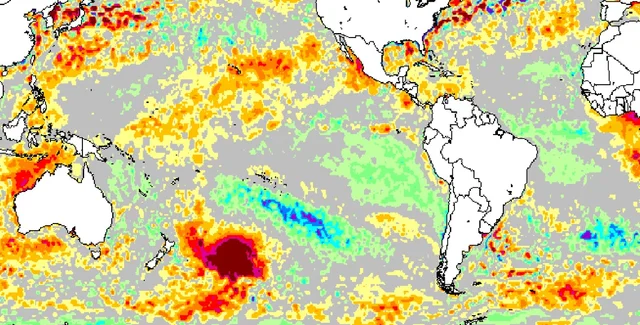"Нередко можно увидеть участки с более теплой водой у Новой Зеландии, но такие масштабы довольно необычны. Вероятно, это очень тонкий слой океана, который прогревался несколько недель в безветренную погоду", – подчеркнул ученый.