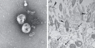Частицы коронавируса 2019-nCoV. Фото: The New England Journal of Medicine