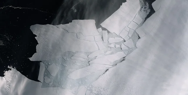 Эксперт ЕКА предполагает, что айсберг откололся из-за продолжающейся нестабильности шельфового ледника, когда более теплая вода под ледником разрушает его основание.