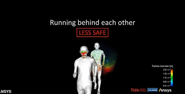 В параллельном сценарии, когда один из бегунов кашляет или чихает, большинство капель остается позади бегунов, а не рядом с ними. В ситуации, где люди бегут друг за другом, капли попадают на последнего бегуна, даже если он соблюдает дистанцию в 2 метра. В этом случае, у капель нет достаточного времени, чтобы упасть на землю.
