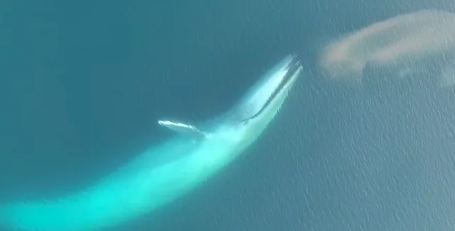 Видео кормежки синего кита, самого большого млекопитающего в мире, удалось снять с дрона.