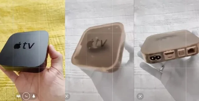 С помощью камеры удалось просветить коробку Apple TV, пульт и футболку