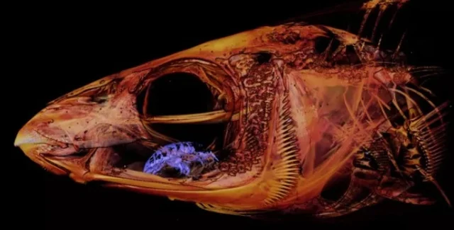 На рентгеновских снимках головы одной из рыб, живущей в коралловых рифах, ученые увидели жуткую картину. Ракоорбразный-вампир съел язык рыбы, а затем заменил его собой. Об этом сообщает LiveScience.