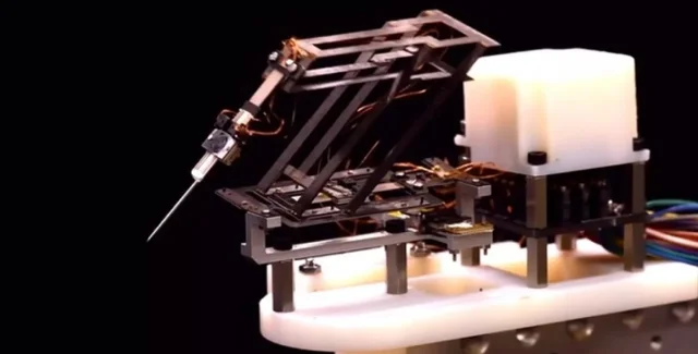 Робот смог аккуратно проткнуть трубку с помощью прикрепленной иглы, не причинив нежелательны повреждений.