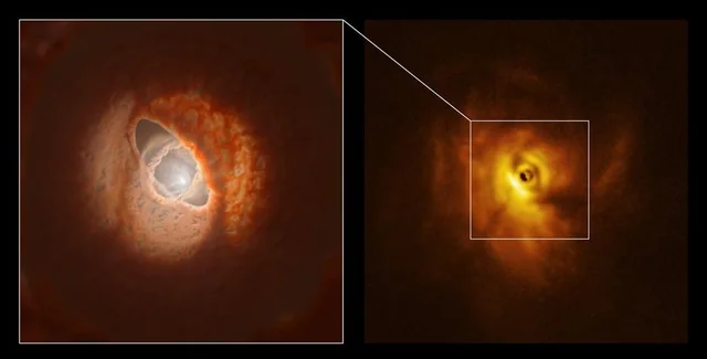 "Наши изображения демонстрируют случай, когда диск совсем не плоский, а деформирован и имеет смещенное кольцо, которое откололось от диска", – говорит ведущий автор исследования профессор астрофизики в Университете Эксетера Стефан Краус.