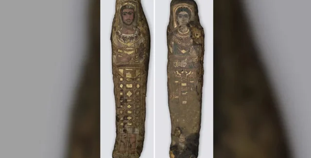 Три мумии, выставленные в Египте, представляют собой единственные известные сохранившиеся "портретные мумии с лепными украшениями" из Саккары, древнего египетского некрополя. В отличие от других мумий, которые были похоронены в гробах, этих людей помещали на деревянные доски, обворачивали тканью и украшали лепкой из гипса, золотом, а также рисунком всего тела, говорит египтолог из проекта German Mummy Рейсса Энгельхорна. Мумии были похоронены в период с 30 г. до н.э. по 395 г. н.э.