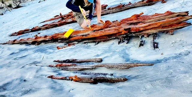 Обнаружили обломки случайно, теперь на месте работают члены Археологической морской программы маяка Святого Августина. По данным их организации – найденные доски, бревна и металлические крепежи принадлежат паруснику "Каролина Эдди", который в 1880 году шел в Нью-Йорк с грузом древесины, но попал в шторм и разбился о скалы.