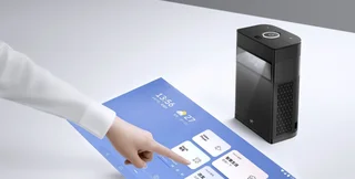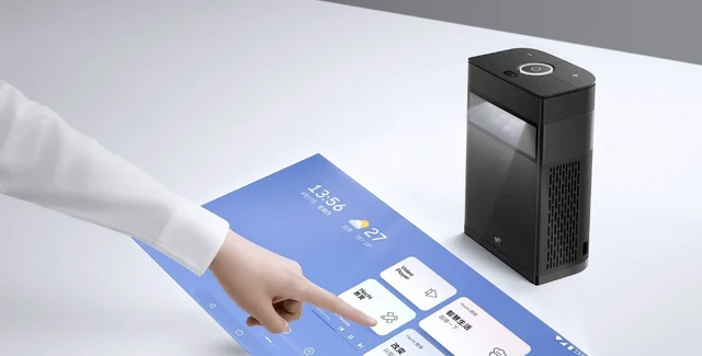Смарт-проектор оборудован высокоточными датчиками и технологией машинного обучения, 5-мегапиксельной камерой и системой искусственного интеллекта, благодаря чему он не только может распознавать жесты и определять местоположение пользователя, но и способен превратить любую поверхность в 23-дюймовый сенсорный экран.