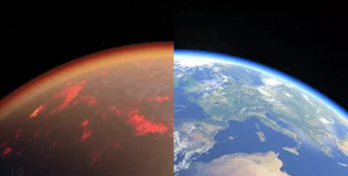 Такое соотношение углекислого газа и водорода поразительно похоже на нынешнюю атмосферу Венеры. Существенное различие заключается в том, что Венера находится слишком близко к Солнцу. Она просто никогда не могла остыть настолько, чтобы образовались водяные океаны. Вместо этого, в ее атмосфере H2O оставался в виде водяного пара и медленного, но неумолимо улетал в космос.