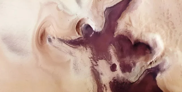Ученые точно не могут сказать, из чего состоит этот красноватый материал. Темные отложения разбросаны по всему Марса. Пятна считаются следами древней вулканической активности, погребенными под марсианской корой. Эрозия, удары астероидов и ураганы постепенно поднимают на поверхность старые шрамы Марса.