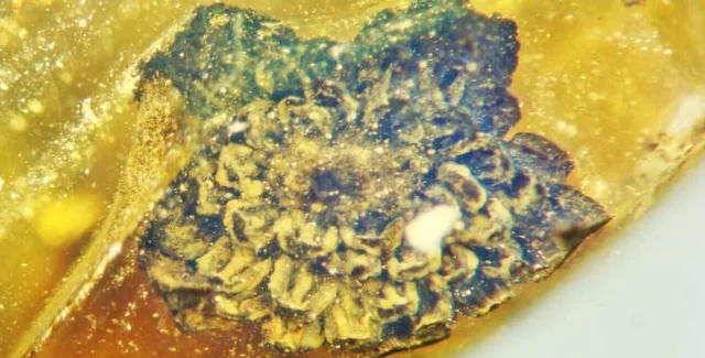 Исследователи нашли древний цветок в осколке бирманского янтаря.