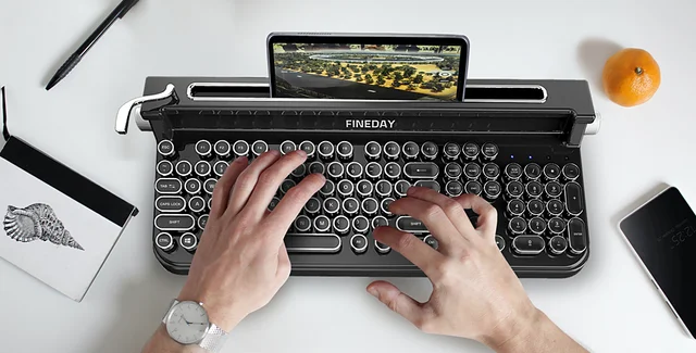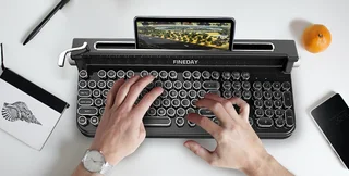 А вишенкой на торте стала механическая клавиатура Fineday-Retro. Хотя она и выглядит, как очень древняя, она оснащена поддержкой Bluetooth, светодиодной подсветкой, подставкой-разъемом для планшета, который служит в качестве монитора, колесиком регулировки яркости подсветки. Помочь инженерам выпустить такое устройство на рынок можно, оставив донат на indiegogo.com.