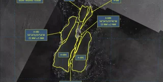 Айсберг, получивший название A-68a, откололся от шельфового ледника Ларсен в северной Антарктиде 12 июля 2017 года и с тех пор неуклонно дрейфует на север. Изначально айсберг имел площадь в 6 тыс. кв. км. Она начал терять большие глыбы льда с апреля 2020 года.