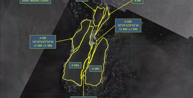 По данным USNIC, в настоящее время от айсберга A-68 откололось в общей сложности 13 кусков, из которых 7 появились за последние несколько дней. Ученые обозначают части, отколовшиеся от родительского айсберга, в алфавитном порядке. Самые новые осколки называются A-68g, A-68h, A-68i, A-68j, A-68k, A-68l и A-68м.
