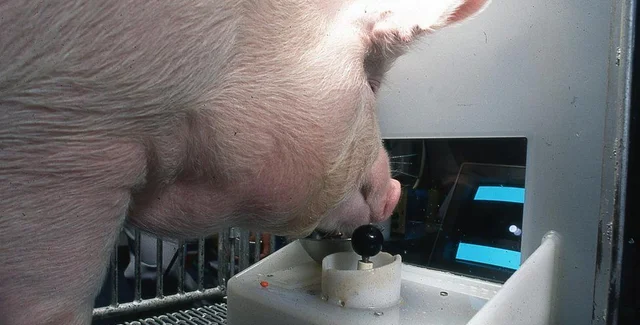 Ученые обнаружили способность у свинок играть в видеоигры при помощи пятака (фото)