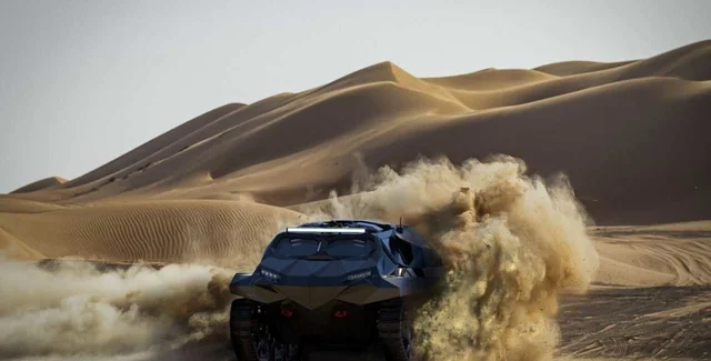 Автомобиль использует амортизаторы, которые способны выдерживать до 65 тонн. Гусеницы разработаны и изготовлены под заказ компанией в Шарджи, она имеет модульное строение, что позволяет удешевить ее эксплуатационную стоимость до 70%.
