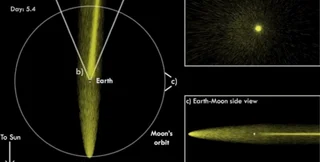 По словам ученых, лунный хвост состоит из миллионов атомов натрия, попавших в космос из лунного грунта в результате ударов метеоритов. В течение нескольких дней в месяц, когда Луна находится между Землей и Солнцем, гравитация нашей планеты вытягивает натриевый хост в длинный луч и он огибает атмосферу Земли.