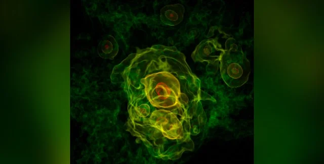Одно из плотных скоплений инфлатонов, которые возникли во время инфляционной фазы Большого взрыва в ранней Вселенной. | Фото: Jens Niemeyer/University of Göttingen