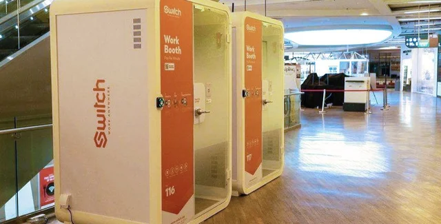 Компания Switch (Сингапур) создала для удаленной работы специальные кабинки, которые находятся в торговых центрах и предназначены для желающих разграничить домашнее и рабочее пространства.