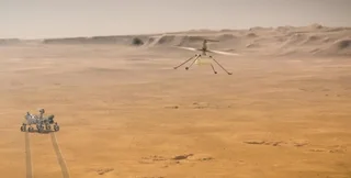Отметим, вертолет Ingenuity прибыл на Марс вместе с марсоходом Perseverance в феврале 2021 года для изучения возможностей для использования винтокрылых летательных аппаратов в разряженной атмосфере Марса. Марсоход Perseverance сделал селфи с вертолетом Ingenuity на 46-й день марсианской миссии.